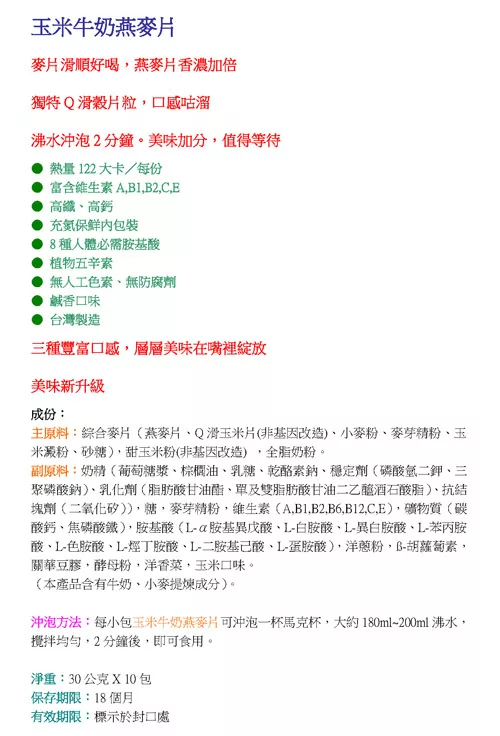 商品推薦:《馬玉山》玉米牛奶燕麥片(10入)